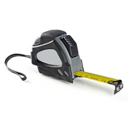 Miara 5 m z uchwytem ułatwiającym noszenie oraz dodatkowym klipem umożliwiającym przyczepienie np. do paska, na końcu znajduje się magnetyczny zaczep ułatwiający korzystanie z miary, produkt wykonany z metalu i plastiku