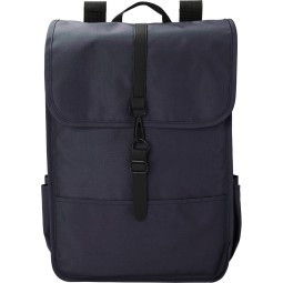 Plecak z klapą wykonany z RPET, dwie kieszenie boczne, przestronna przegroda główna, zamykany na klamrę